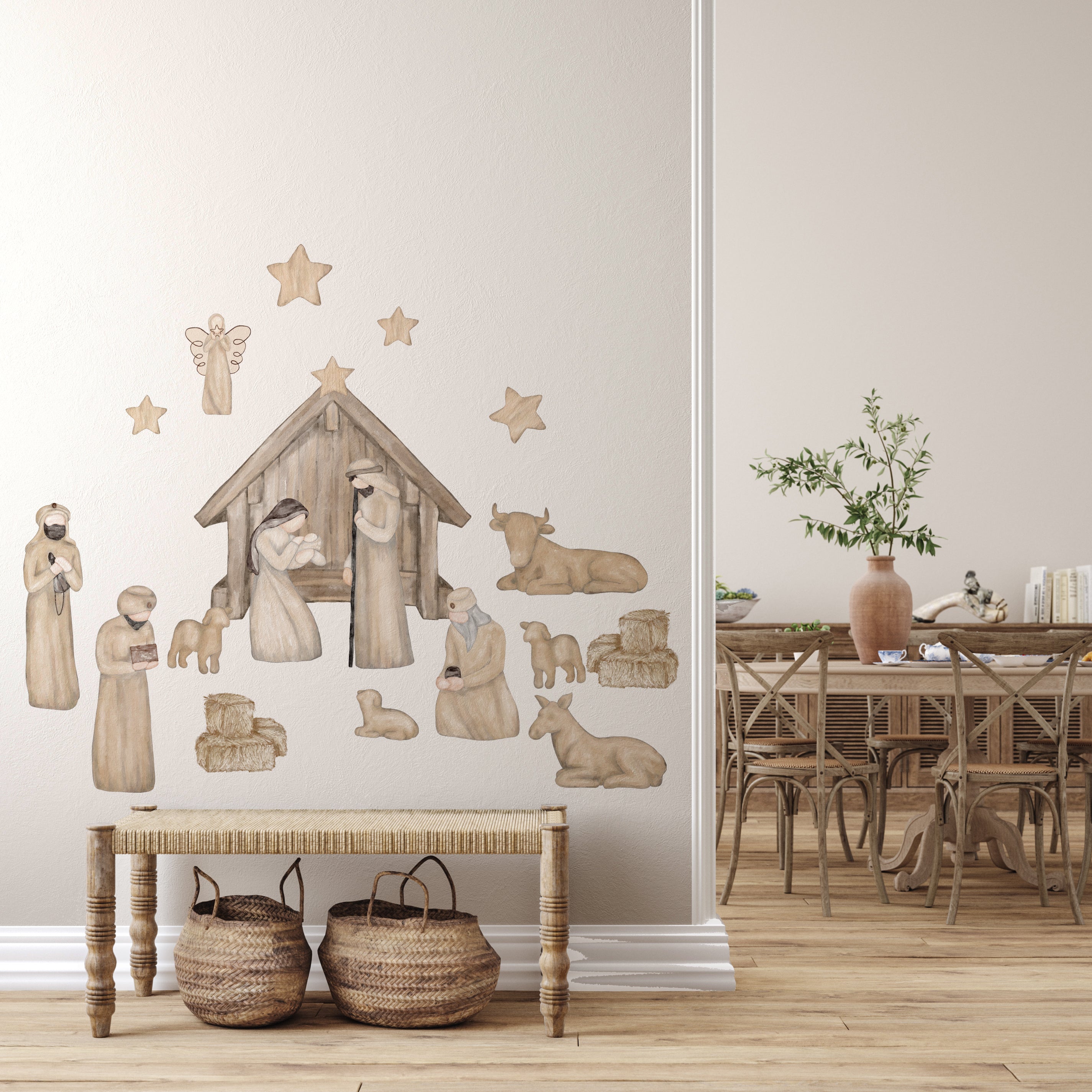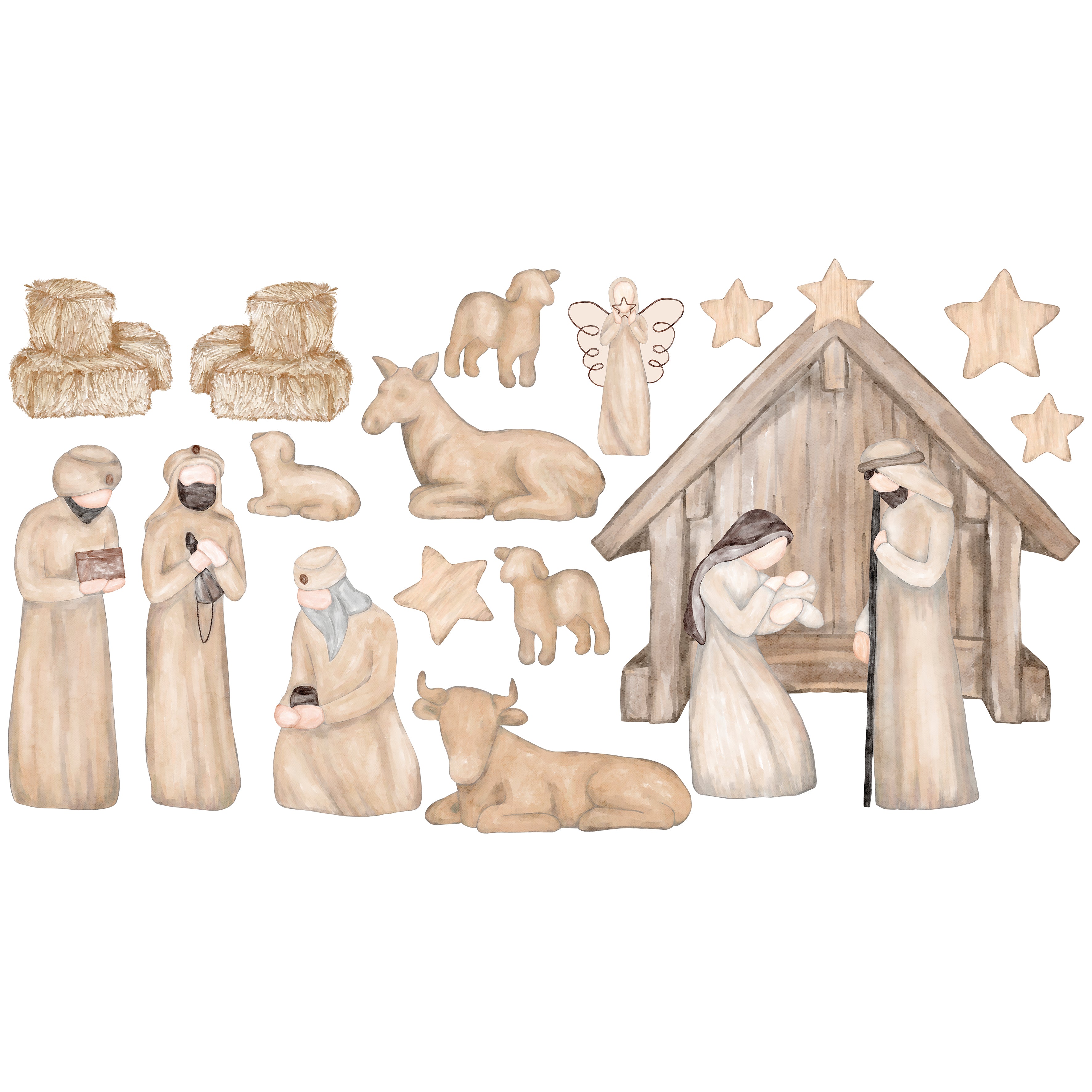 Contiene 1 sticker de pesebre con Maria, Jesús y José.